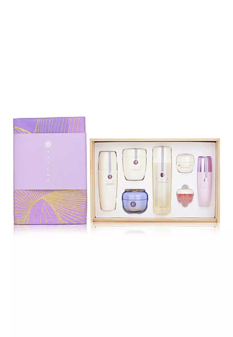TATCHA – 日本桐木奢華禮盒:純淨山茶花卸妝油 150ml + 柔亮大米酵素潔膚粉:經典 60g + 昇肌水 150ml + 煥麗柔膚面霜 50ml + 白牡丹絲滑眼部精華抗皺眼霜 15ml + 一吻傾情果凍護唇膜 9g + 絲滑修護美顏液 30g 5pcs